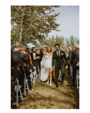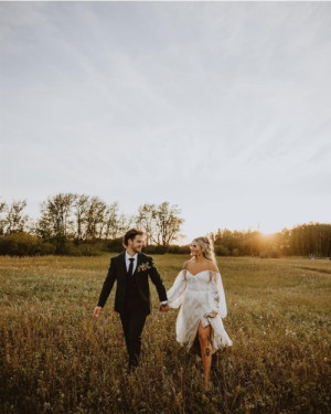 Where Love meets our amazing Prairie Sunsets. Charly and Andrew were married on a beautiful afternoon on the 21st of September , in front of their very closest family and friends .The setting was in the grassy area at The Prairie Shanty at Four Sisters Farm
